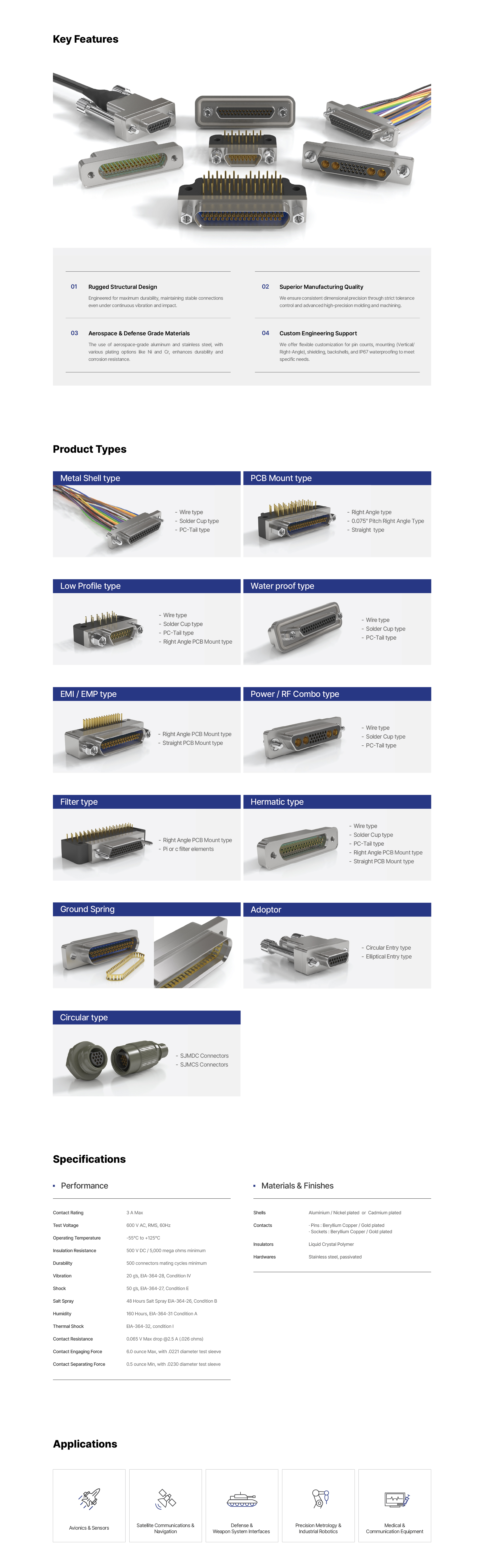 Compliant with MIL-DTL-83513, these connectors deliver stable performance in extreme environments via their lightweight, vibration-resistant, and heat-tolerant structure.